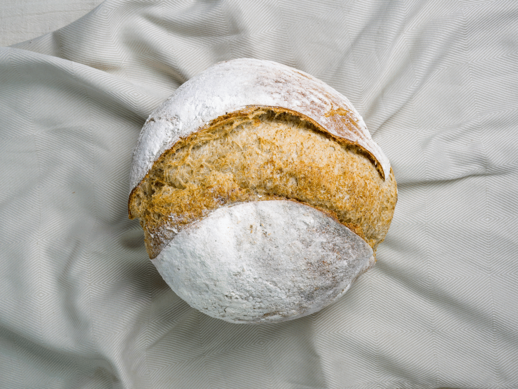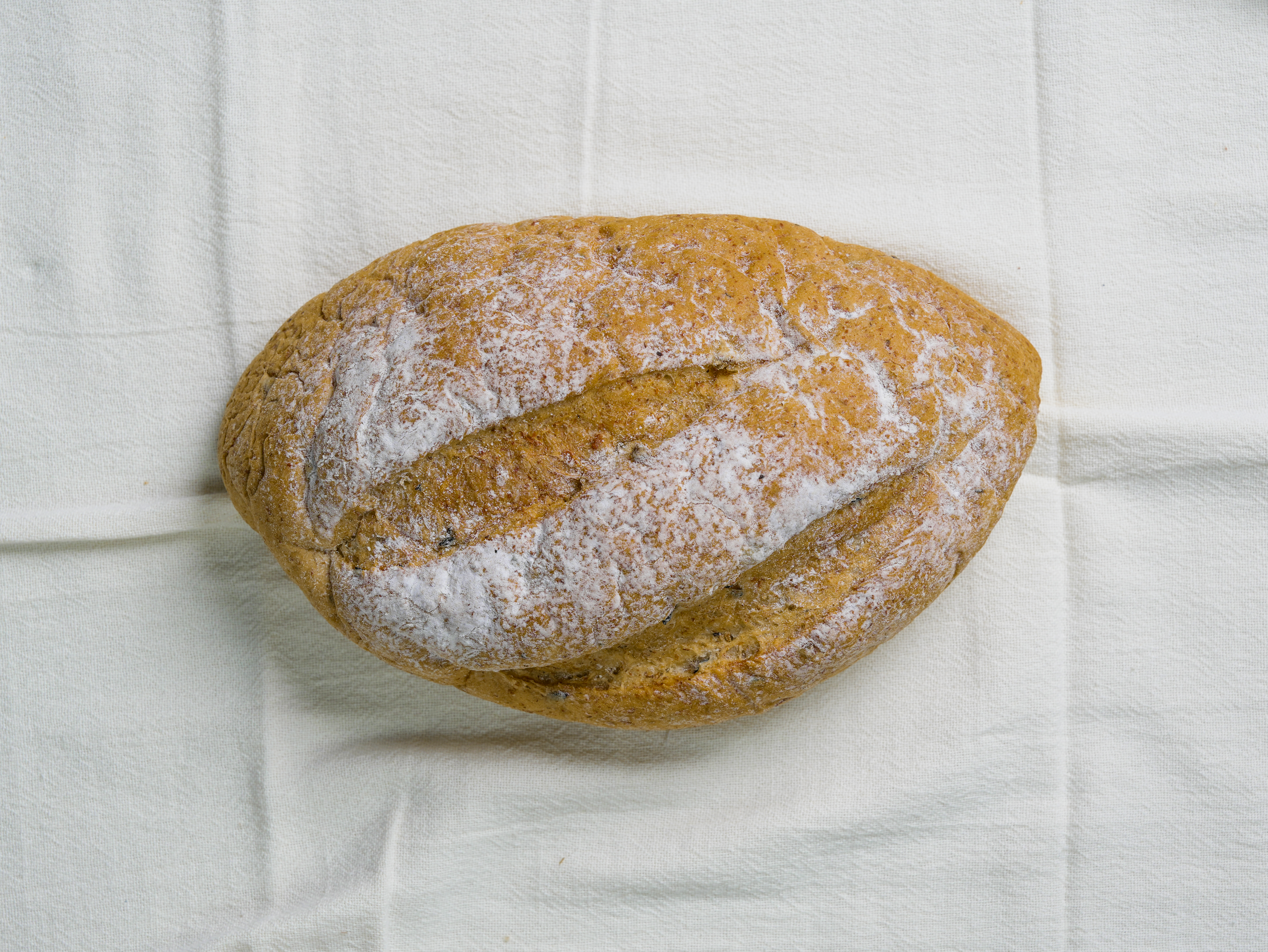 Rustic loaf made with natural flour, olive oil, green and black olives, and a touch of sea salt – soft,